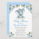 Convites Chá de fraldas Elefante Silver Floral Azul
