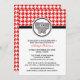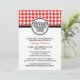 Convites: Na moda e convites clássicos para o Baby Shower projetados em um padrão vermelho e branco de som, um elefante de cinza adorável e impresso com detalhes de celebração.