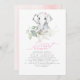 Bonita e adorável bebê - pequena bebê elefante convida 'Um Pequeno Amendoim está a caminho!'. Se você procura convites minimalistas de tons cor-de-rosa para bebês, modernos e pastéis, não olhe mais - estes definitivamente abraçaram seus próximos convidados de chá de fraldas e representam sua alegria, amor e cuidado...