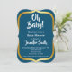 Convite para Chás de fraldas Elegante Azul e Dourado
