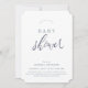 Este convite de chá de fraldas de menino minimalista e moderno apresenta letras elegantes de roteiro. O verso apresenta um fundo branco com faixas azuis. Personalize para suas necessidades. Você pode encontrar produtos correspondentes na minha loja.