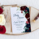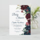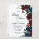 Convites Chá de fraldas Elegante Borgonha e Flores Azuis Ma