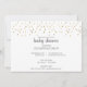 Simples e elegante, esses convites são a forma perfeita de convidar amigos e família para o chá de fraldas da filha, irmã ou amiga. A design apresenta gotas de chuva douradas com tipografia de cinza na frente. O dorso está coberto nas mesmas gotas de chuva com uma cor de fundo azul macio.