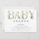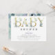 Convites Chá de fraldas Elegante de Flores Azuis Douradas d
