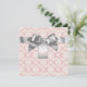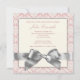 Beige de marfim elegante e damasco cor-de-rosa pálido com modelo de arco de cinza de prata bonito. Este elegante convite para marfim, cor-de-rosa e chá de fraldas é facilmente personalizado para o seu evento, simplesmente escolhendo o botão "Personalizar" para começar a adicionar os detalhes do evento, estilo de fonte, tamanho de fonte e cor e texto. Observe que todos os adesivos, cartões e designs de convite que você encontrará no Zazzle são gráficos impressos sem joias reais, arcos, levantados, gravados, ou peças ou peças adicionadas.