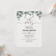 Verde eleganteConvite para chá de fraldas Eucalyptus. Apresenta um arranjo de folhas e folhagem de cor aquosa de eucalipto, que leva ao chá de fraldas em letra chic manuscrita.