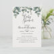 Elegante convite de chá de fraldas botânico Eucalyptus. Apresenta um arranjo de folhas e folhagem de eucalipto de aquarelas, que leva ao título de brunch, em letra chic manuscrita.