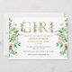 Baby Girl Elegante Eucalyptus Greenery Chá de fraldas Invitation - Celebre a chegada do seu bebê precioso com este elegante, moderno e bonito 'Convite ao Chá de fraldas' horizontal, com uma folha de ouro como o alfabeto 'Girl', decorado com folhagem de algodão branco e folha de eucalipto verde em cada lado. O plano de fundo apresenta cor verde de sábio. Todos os textos estão pré-organizados para que você personalize fácil e rapidamente com os detalhes do seu chá de fraldas.