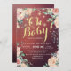 Modelos de Cartões de Convite para chás de fraldas - Roteiro de Folha Ouro Faux, Roses Brancas Florais de Pessegueira Elegante de Aquarelas e Luzes de Cordas no Plano de Fundo do Damasco Vermelho Borgonha. Todo Estilo De Texto, Cores, Tamanhos Podem Ser Modificados Para Ajustado Das Suas Necessidades.