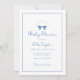 Anuncie a chegada de um pequeno cavalheiro com nosso convite para Chá de fraldas Simples Elegante Arco Azul. Apresentando um design de arco azul suave com tipografia limpa e refinada, este convite atinge o equilíbrio perfeito entre charme e sofisticação. O layout minimalista e a paleta de cores clássica fazem dela uma bela escolha para qualquer tema de chá de fraldas, oferecendo uma maneira de eterno e na moda para celebrar a futura mãe e seu filho.