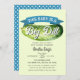 Celebrar a mãe a ser com este Chá de fraldas do Grande Dill Pickle Boy Conite design. Este Design apresenta um grande picles de aquarela com o texto "Um Bebê é um Grande Dill". O inverso é um padrão de bolinhas azuis e brancas. Correspondência de Itens em nosso compro para um tema completo de festa.