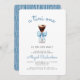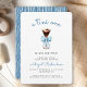 Este convite de chá de fraldas de tendência apresenta uma ilustração aquosa de um martini espresso enfeitado com um arco azul. Acima de tudo, as palavras "um tini" aparecem em escrita casual azul. Personalize o texto com o nome da futura mãe no script azul e os detalhes na fonte serif de cinzas de carvão. A parte traseira da placa apresenta um padrão de listras desenhadas à mão em branco sobre um fundo azul. Ideal para o chá de fraldas de um menino.