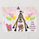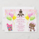 O chá de fraldas bonito da menina do afro-americano convida. Divertimento, girafa feliz, lunático dos desenhos animados com sua cabeça que olha para baixo entre seus pés em um bebé étnico bonito que guardara cupcakes cor-de-rosa. Ao lado deles é uma caixa de presente colorida com fita. O fundo é um rosa brilhante e alegre bonito estourado com balões e as flâmulas coloridos. Este o na moda, convites elegantes é decorado ambos os lados. Convites na moda, femininos, modernos para meninas étnicas. NOTE POR FAVOR: Todos os convites em Zazzle têm imagens impressas do plano. O texto, a pia batismal e a cor da pia batismal são personalizable/customizáveis na parte de trás dos convites, texto na parte dianteira são fixos. Se você precisa o auxílio que personaliza seu produto me contacta por favor através de minha loja e eu estarei feliz ajudar. Alguns elementos comprados de resaleclipart.com.