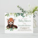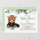 Urso aquoso adorável de cor verde eucalipto, urso panda vermelho, podemos esperar neutro em termos de gênero. Você pode personalizar este doce convite com seu próprio texto.