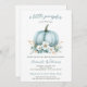 Celebre a chegada da sua abóbora com este incrível convite para chá de fraldas de outono, com um charmoso design de abóbora azul. O trabalho de arte de aquarela suave destaca delicados acentos florais e eucaliptos em tons pastéis de sujeira, criando uma atmosfera quente e convidativa do outono. Com a frase "está a caminho", este convite é perfeito para um chá de bebê. O estilo rústico, porém elegante, faz dele uma escolha ideal para aqueles que abraçam um tema de abóbora. Personalize-o para criar um guardião que captura a alegria dos entes queridos que se juntam para celebrar a sua nova chegada.