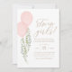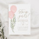 Convide amigos e familiares a compartilharem a alegria da chegada de meninas gêmeas com este convite de chá de fraldas, apresentando dois balões de aquarela e eucalipto com tipografia de ouro.