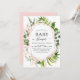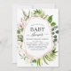 Eucalyptus Greenery Botanical Watercolor e Rosa Dourado - Blush Pink Geométrico Primavera Baby Shower Invices em fundo branco - inclui uma bela e elegante tipografia com folhas botânicas modernas e verde para a celebração da Mãe-Ser especial.