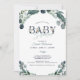 Convide a família e os amigos a honrarem a nova mãe a ser com este convite que apresenta eucalipto e verde sábio e marinho com letras azuis acentuadas com buquês florais e tipografia moderna da escrita para o CHÁ DE FRALDAS do título. Ideal para o bebê ou para o chá de fraldas temático neutro em termos de gênero. Entre em contato com o designer se você quiser que este design seja modificado, em outro produto ou itens complementares do evento.