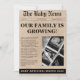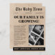 Este convite de chá de fraldas inspirado na vintage apresenta um fundo estilo de jornal bege, com um layout clássico: detalhes do evento (data, local, RSVP) à esquerda e uma foto personalizável à direita. Uma segunda foto pode ser adicionada às costas para um toque pessoal. Perfeito por comemorar sua manchete de estilo!