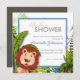 Um chá de fraldas feito sob encomenda convida caracterizando o design do leão e da árvore da selva