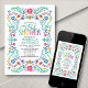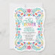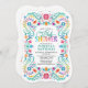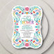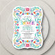 Mariachi, margaritas e memórias! Atirem a festa com este design de festa popular mexicano. O texto colorido e a trabalho de arte (desenhada à mão pela própria Lively Scribe) dão a esta design uma vibração peculiar, mas elegante. Perfeito para o latinx na sua vida. Ou uma festa que é convenientemente próxima de Cinco de Mayo ou Dia de los Muertos. Solicite seus convites impressos e suprimentos de festas ou faça o download de seus convites digitais agora por um dia que eles nunca esquecerão!