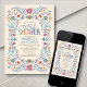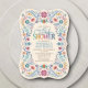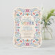 Mariachi, margaritas e memórias! Atirem a festa com este design de festa popular mexicano. O texto colorido e a trabalho de arte (desenhada à mão pela própria Lively Scribe) dão a esta design uma vibração peculiar, mas elegante. Perfeito para o latinx na sua vida. Ou uma festa que é convenientemente próxima de Cinco de Mayo ou Dia de los Muertos. Solicite seus convites impressos e suprimentos de festas ou faça o download de seus convites digitais agora por um dia que eles nunca esquecerão!