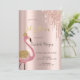 Convites Chá de fraldas Flamingo cor-de-rosa, gotas Dourada