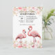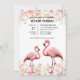 Convites Chá de fraldas Flamingo, Elegante Floral, Rosa
