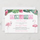 Aloha Baby! Folhagem tropical exuberante e flamingos elegantes adoram estes convites divertidos para o chá de bebê.