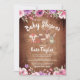 Apresentando um veado, raposa, coelho e terras florais bonitinhos em um fundo de madeira rústico. Este chá de fraldas elegante, borrifo ou chá de casais pode ser personalizado com suas informações de chá de fraldas especiais. Projetado por Thisnotme©