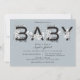 Convite à Chá de fraldas de Azul Dusty, com a palavra "Bebê", com uma botânica, flores, ramos e outros elementos naturais de buquês selvagens ilustrados. Personalize com as informações do seu chá de fraldas.