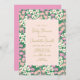 Celebre a chegada do seu pequeno com este charmoso convite para chás de fraldas florais cor-de-rosa. Apresentando uma mistura suave de pincel, creme e sábio verde em um padrão de flores inspirado na safra, esta design é perfeita para chás de primavera e verão. Ideal para festas de jardim, temas de cottagecore ou mamas retrógradas. Personalize todo o texto para torná-lo verdadeiramente seu.