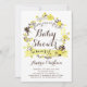 Convide convidados para o seu evento com este convite de chá de fraldas personalizável. Ele apresenta uma coroa floral amarela e branca. É perfeito para primavera e chás de fraldas ao ar livre. Personalize adicionando seus detalhes. Outras cores estão disponíveis.