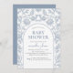 Convites Chá de fraldas Floral Branco e Azul Elegante