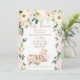 Que bebê precioso numa cesta. Um cheio de amor. Este é um belo convite para chás de fraldas com flores pastel em volta do doce bebê.