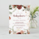 Este chá de fraldas floral rústico de ouro colorido é perfeito para um simples chá de fraldas. O design apresenta marsala pintada à mão, cor-de-rosa, pinceladas, burgundy e flores douradas com folhas verdes dispostas em lindas coroas.