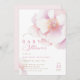 Convite para Chá de fraldas Floral Cor-de-Rosa Esbranquiçada! Apresentando elegantes designs florais modernos com delicadas flores cor-de-rosa, este convite botânico é perfeito para eventos de primavera ou verão. Com as suas florais de aquarela pastel macio, pistas de rosa e ouro e um tema de "bebê em flor",