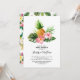 Abacaxi Abacaxi Abacaxi Floral Convite para Chá de fraldas Tropical | Convite para chás de fraldas tropicais divertidos e festivos, com ilustrações aquosas de hibisco, abacaxi e folhagem cor-de-rosa, com um padrão tropical correspondente ao dorso. Este convite de verão é totalmente editável para qualquer evento temático tropical e havaiano. Personalize adicionando seus detalhes. Itens correspondentes estão disponíveis.
