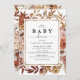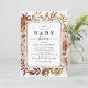 Esperando um Bebê do outono - Estes belos convites para o bebê no outono do outono são perfeitos! Design apresenta um fundo branco clássico, com uma borda cheia de rosas brancas e rosa-pinceladas, folhas autunares combinadas com outras flores de outono de cor aquosa e folhagem botânica russa. O modelo é elegante e fácil de personalizar.