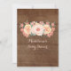 Convites personalizados para chuveiros de bebês com padrão de madeira marrom do país rústico e pêssego e flores cor-de-água rosa pincelada. Perfeito para primavera ou chá de fraldas de verão.