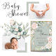 Convites Chá de fraldas Floral de Dourada Aquarela Verde Sa