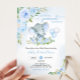 Convites Chá de fraldas Floral de Elefante Azul