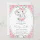 Convites Chá de fraldas Floral de Elefante Cuta, Rosas Rosa