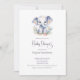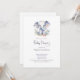 Convide os convidados para o chá de fraldas com esse convite apresentando um doce elefante bebê com flores e folhagem, tudo em tons suaves de azul e pêssego.