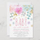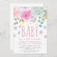 Convite de chá de fraldas personalizável com flores cor-de-rosa de inverno em um fundo branco limpo.