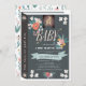 Este belo "bebê é o início de uma história muito bonita" convite para chás de fraldas de meninas apresenta um livro negro desenhado com flores. O verso apresenta um fundo branco com padrões florais. Personalize-o para as suas necessidades.