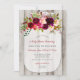 Convite de chá de fraldas floral de Mason, russo, com fundo de madeira, silhueta de Mason jar com sotaque floral de burgundy. Muito fofo!