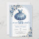 O convite para o chá de fraldas Tutu Ballerina apresenta a cor d'água das flores azuis do marinho Boho e dos tutu azuis empoeirados com folhagem verde misturada tecida em arco tropical. Um vestido de tutu e rosas de flores azuis marinhos se juntam para um convite de chá clássico que certamente impressionará! A letra do script chic diz "Estamos entusiasmados". Contacte-me para obter itens correspondentes ou para personalização, Rosas embebidos ©