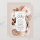 Um convite de chá de fraldas floral russo, com flores e folhas de outono.