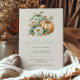Este doce convite para chás de fraldas apresenta uma imagem aquosa de duas abóboras em tons pastéis de verde-sábio e laranja, adornada com flores brancas e laranja. Abaixo, as palavras "apaixonar-se" aparecem no elegante roteiro verde de sábio. Personalize o texto com o nome da futura mãe no script e os detalhes na fonte serif de cinzas de carvão em um fundo bege. Ideal para um chá de fraldas de queda neutro em termos de gênero.